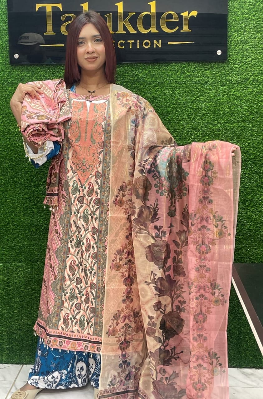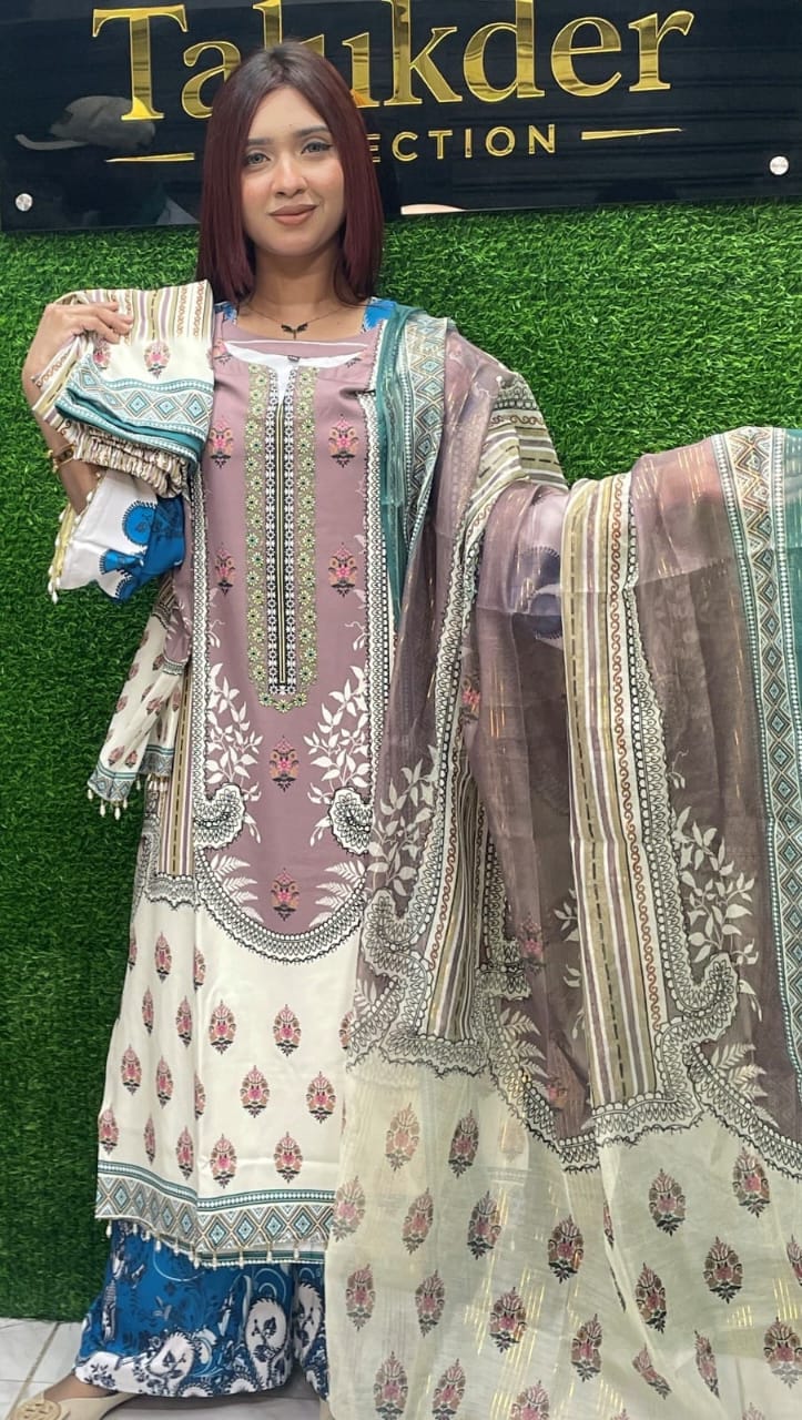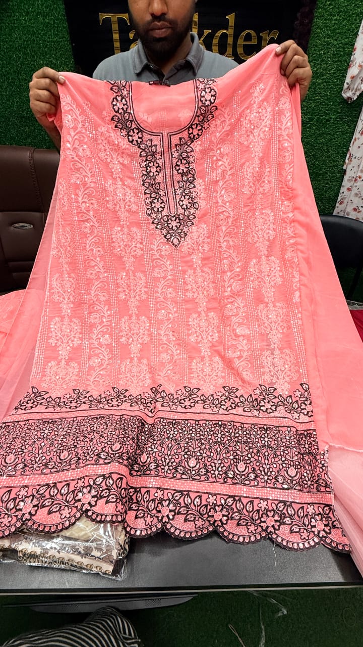 পাকিস্তানি ভাইরাল প্রেমিয়াম কোয়ালিটি এমব্রয়ডারি করা থ্রি পিস