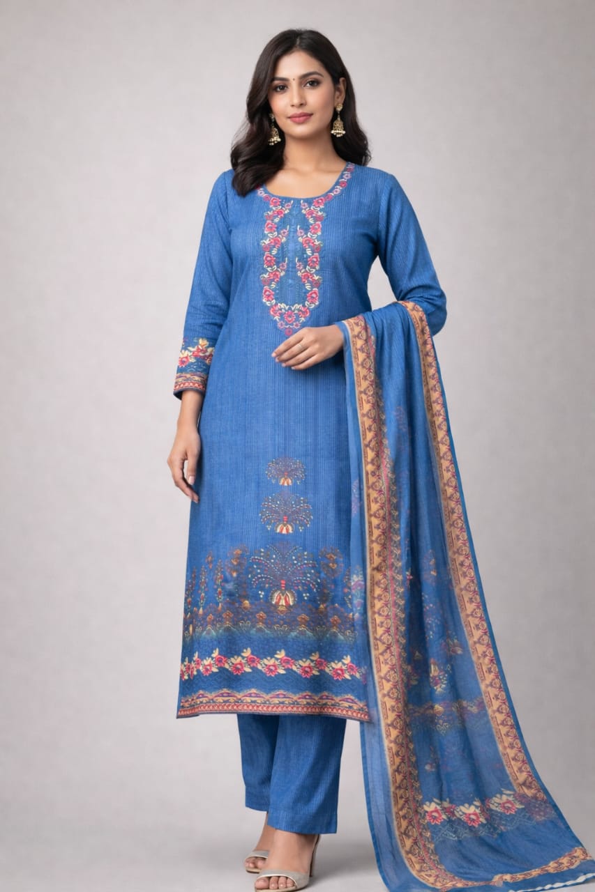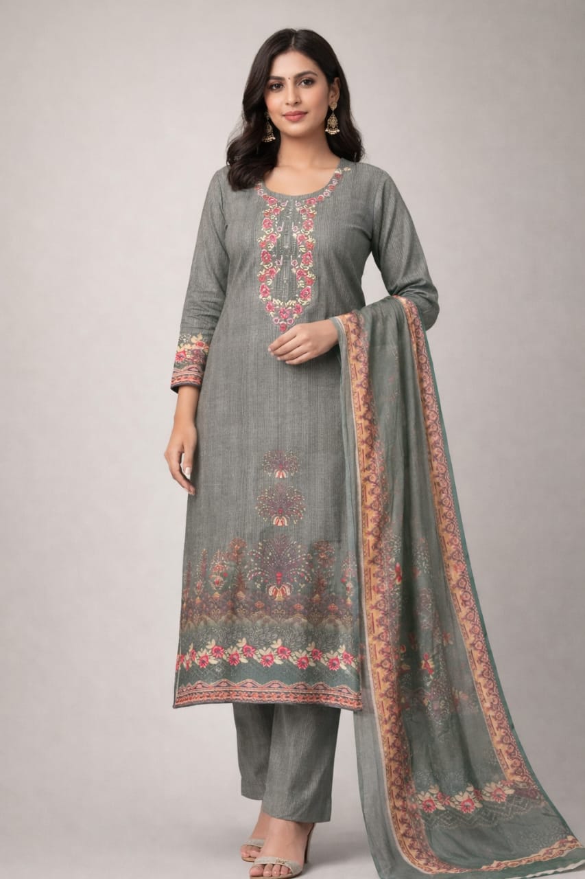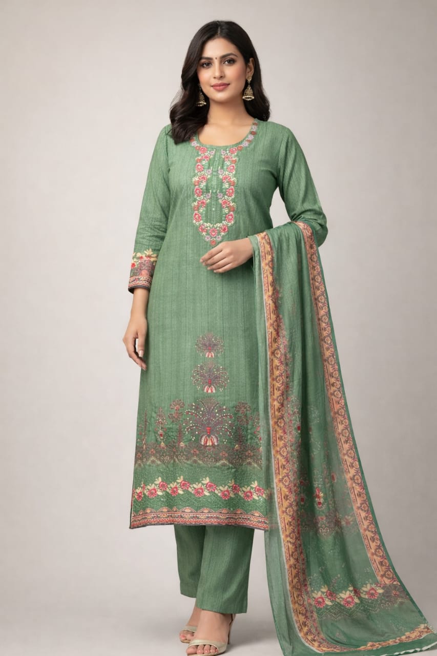 কাশ্মীরি প্রিমিয়াম থ্রি পিস সুন্দর এমব্রয়ডারি করা